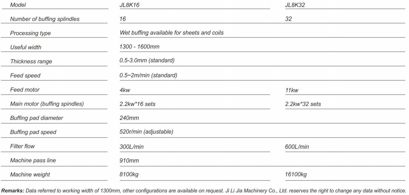 The mirror is characterized by low roughness and high reflection rate, and it is very difficult to distinguish from the real mirror. Through the mature technical support, Ji Li Jia newly developed JL8K mirror buffing machine in 2014 which has 2 patent certifications. The special buffing abrasive technology with the non-directional movement orbit can eliminate the micro defect in any direction, commonly called 8K mirror, which is characterized by: